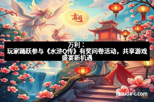 总结:参加《水浒Q传》有奖问卷,实际上是在和游戏共同成长。你不仅能借此表达你的心水建议,还能赢得心仪的奖品,甚至成为众人瞩目的幸运儿。轻松几步,既能参与到游戏的未来规划中,也能享受到意想不到的惊喜。